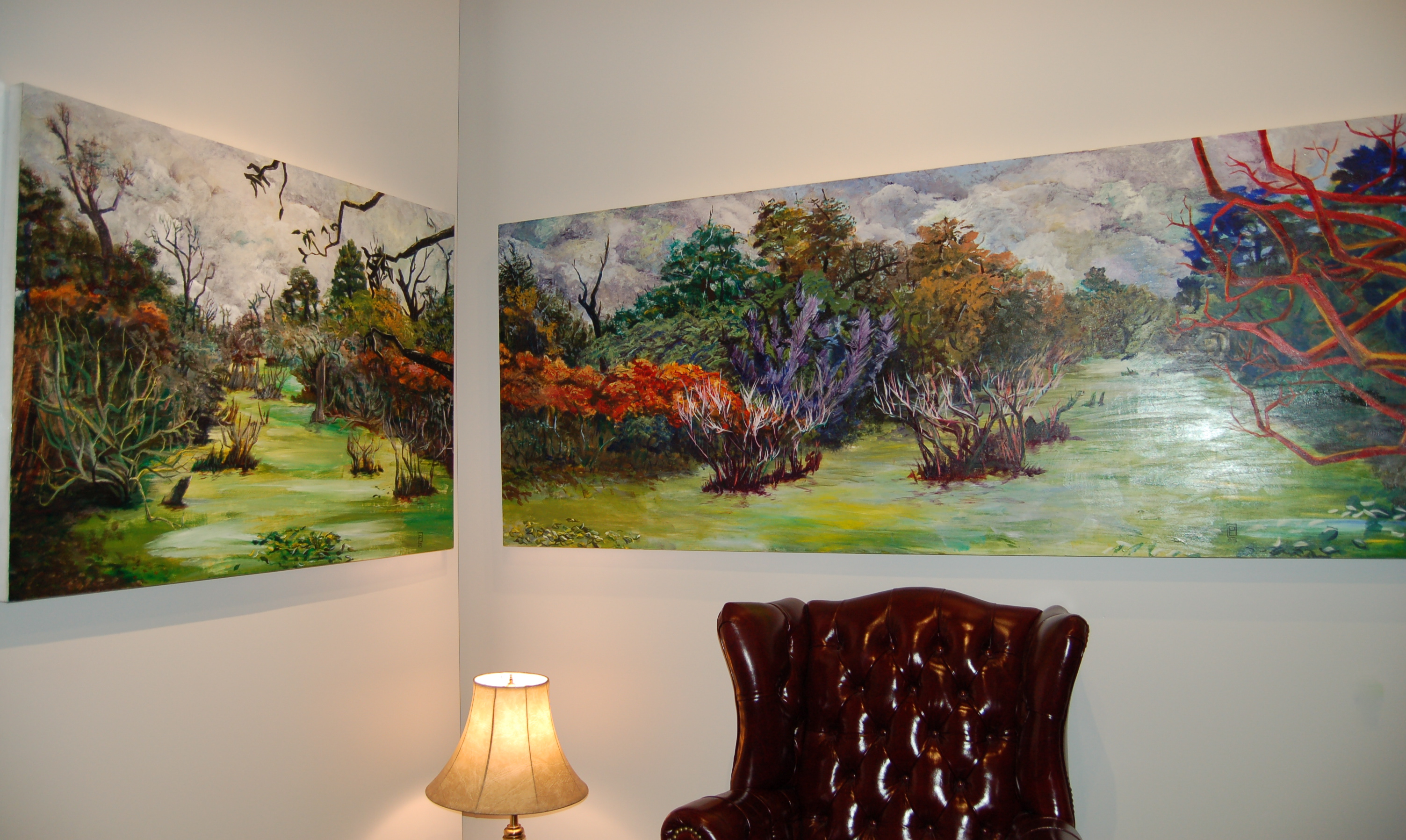The seeds of this venture began in 2002, when artist Paula Lalala was asked by her mother to make an artwork to fit inside of a window in her home. Paula’s work depicts the trees that were obscured by the placement of the painting. After encountering this work at a party, a business executive wanted Paula to create something for his office; thus The Commission Project was launched.